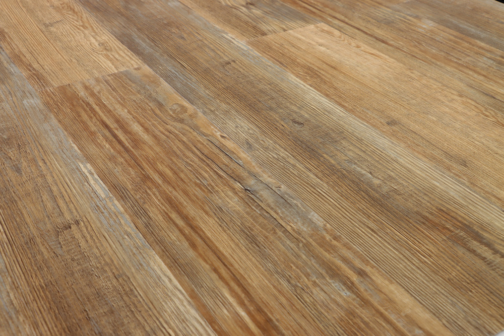 Замковое напольное покрытие с очень твердой минерально(Карбонат кальция)-полимерной плите. Верхние слои – это полиуретановый защитный слой на декоративной фотопечати.